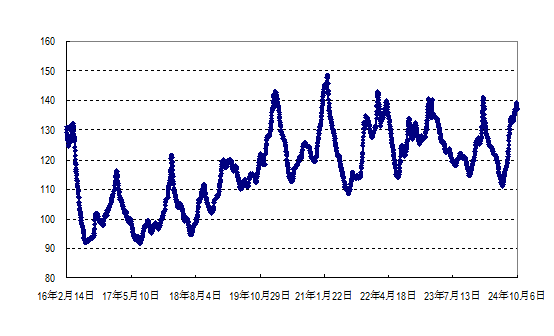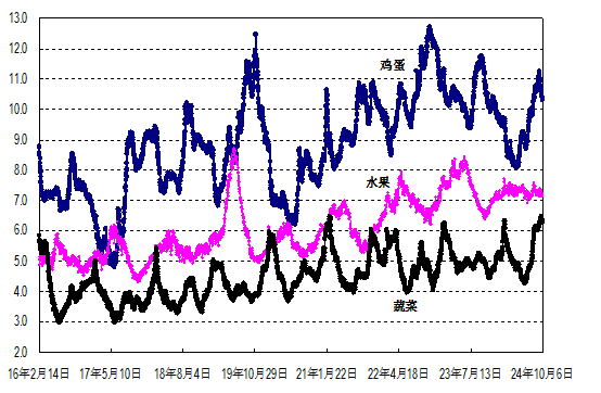 据农业农村部监测,2024年第40周(2024年9月30日—10月6日,下同)“农产品批发价格200指数”为134.12(以2015年为100),比前一周降0.70个点,同比高13.44个点;“‘菜篮子’产品批发价格指数”为137.39(以2015年为100),比前一周降0.82个点,同比高16.66个点。