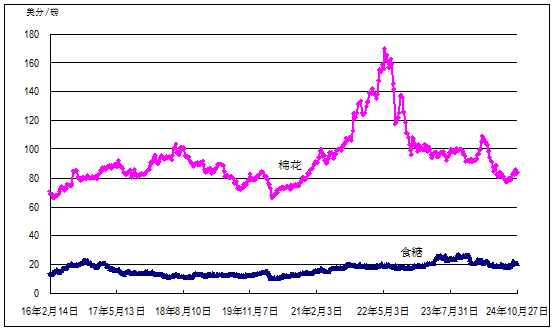 马来西亚棕榈油荷兰鹿特丹港到岸周均价每吨1252美元,环比涨5%,同比高42%;美国芝加哥商品交易所豆油、玉米和大豆最近期货合约收盘周均价每吨分别为961美元、164美元和364美元,环比分别涨4%、3%和1%,同比分别低16%、14%和23%;泰国100%B级和5%破碎率大米曼谷离岸周均价每吨分别为545美元和529美元,环比分别涨2%和1%,同比分别低9%和10%;国际棉花价格指数(SM级)每磅83.97美分(每吨1851美元),环比涨1%,同比低13%。
