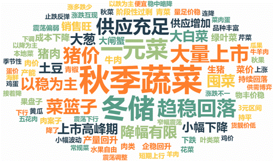 3.蔬菜均价继续回落。受季节性影响,秋季蔬菜陆续集中上市,价格逐步回落。重点监测的28种蔬菜周均价每公斤5.54元,环比跌4.8%,为连续4周下跌,累计跌幅13.3%,同比高17.9%。分品种看,23种蔬菜价格下跌,5种上涨,其中,菠菜、芹菜、洋白菜、大白菜和白萝卜价格环比分别跌14.6%、12.6%、11.5%、11.3%和11.0%,其余品种价格跌幅在10%以内;南瓜、葱头、蒜薹、土豆和冬瓜价格环比分别涨3.9%、2.7%、1.8%、0.5%和0.4%。