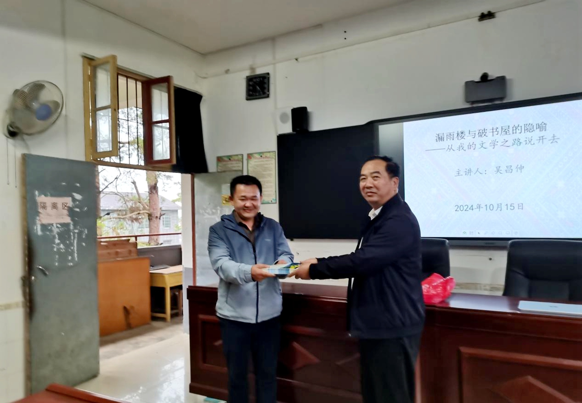 10月16日,“漏雨楼与破书屋的隐喻”文学讲座活动在牙屯堡镇中学举行,中国作家协会会员吴昌仲主讲,该校师生、文学爱好者50余人参加。