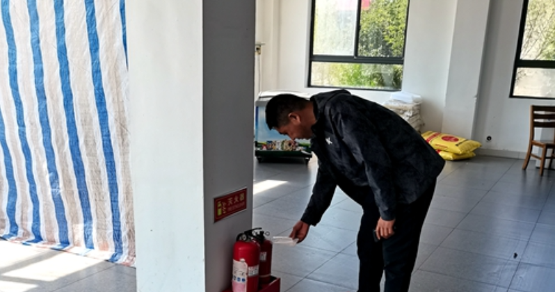 工作人员检查消防设施