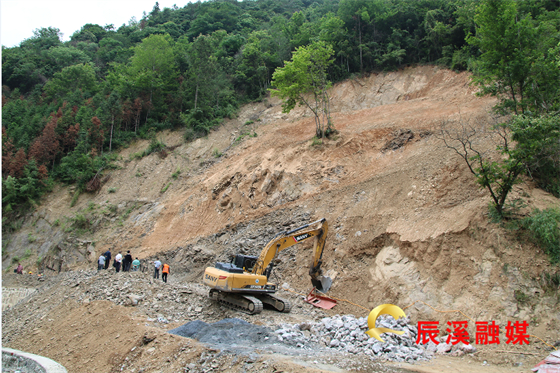 该中心邀请市407队、县自然资源局相关技术人员多次深入实地踏勘,现场研讨,制定施工方案,于6月1日正式启动该山体高边坡处治工作,经过一个星期施工,山体的上部减重(清理表面浮土、降坡和建立缓冲区平台)已完成,接下来将进行下部抗压(浇筑片石混凝土挡土墙)施工,6月底可完成整个边坡处治施工任务,预计投资70余万元。