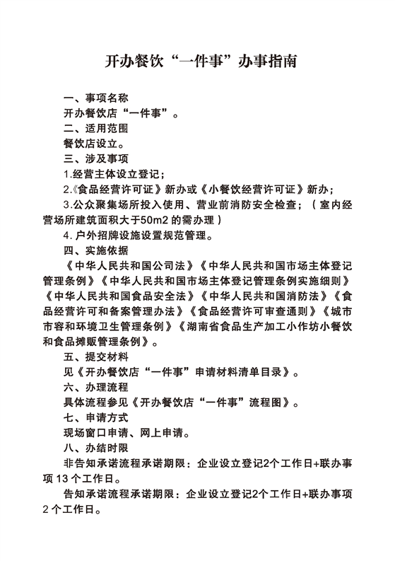 高效办成一件事“开办餐饮店一件事”