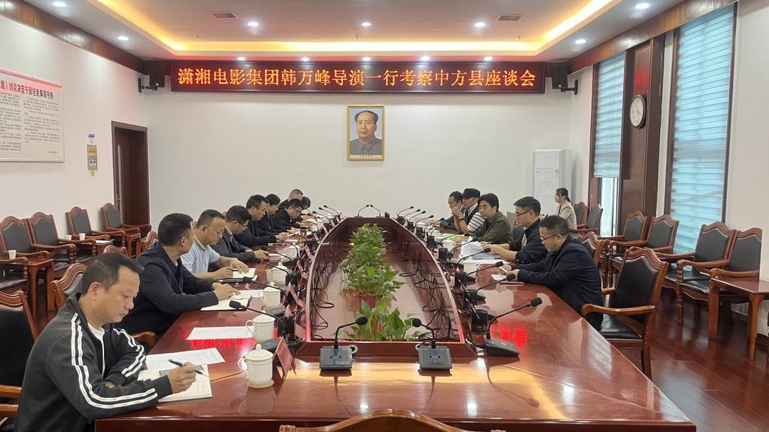 10月17日下午,潇湘电影集团考察组来中方县考察座谈会在县行政中心5号会议室召开,中方县委书记张家铣,潇湘电影集团导演韩万峰,怀化市工商联副主席陈晓云,中方县领导刘佳、杨小华及县直相关单位负责人参加。