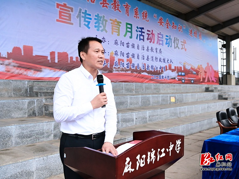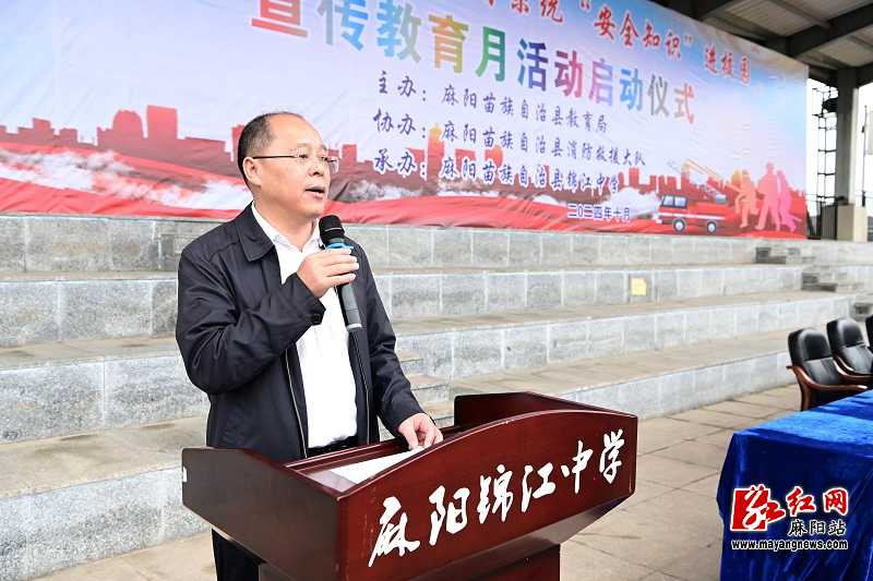 胡宏林在启动仪式上致辞。他说,近年来,麻阳全县上下牢记习近平总书记殷殷嘱托,深入学习宣传贯彻习近平总书记对安全生产工作的重要指示精神,扎实推进青少年安全教育、法治教育,平安校园、法治校园建设向纵深发展,为广大师生营造了一个安全、和谐、稳定的学习工作环境。他希望,全县各级各部门携起手来,深入开展安全知识进校园宣传教育活动,让每一个孩子深耕安全常识、细育安全理念、健康安全成才;教育系统要切实把思想和行动统一到县委、县政府的决策部署上来,在省、市教育主管部门的关心支持下,埋头苦干、勇毅前行,奋力开创麻阳教育事业高质量发展新篇章。